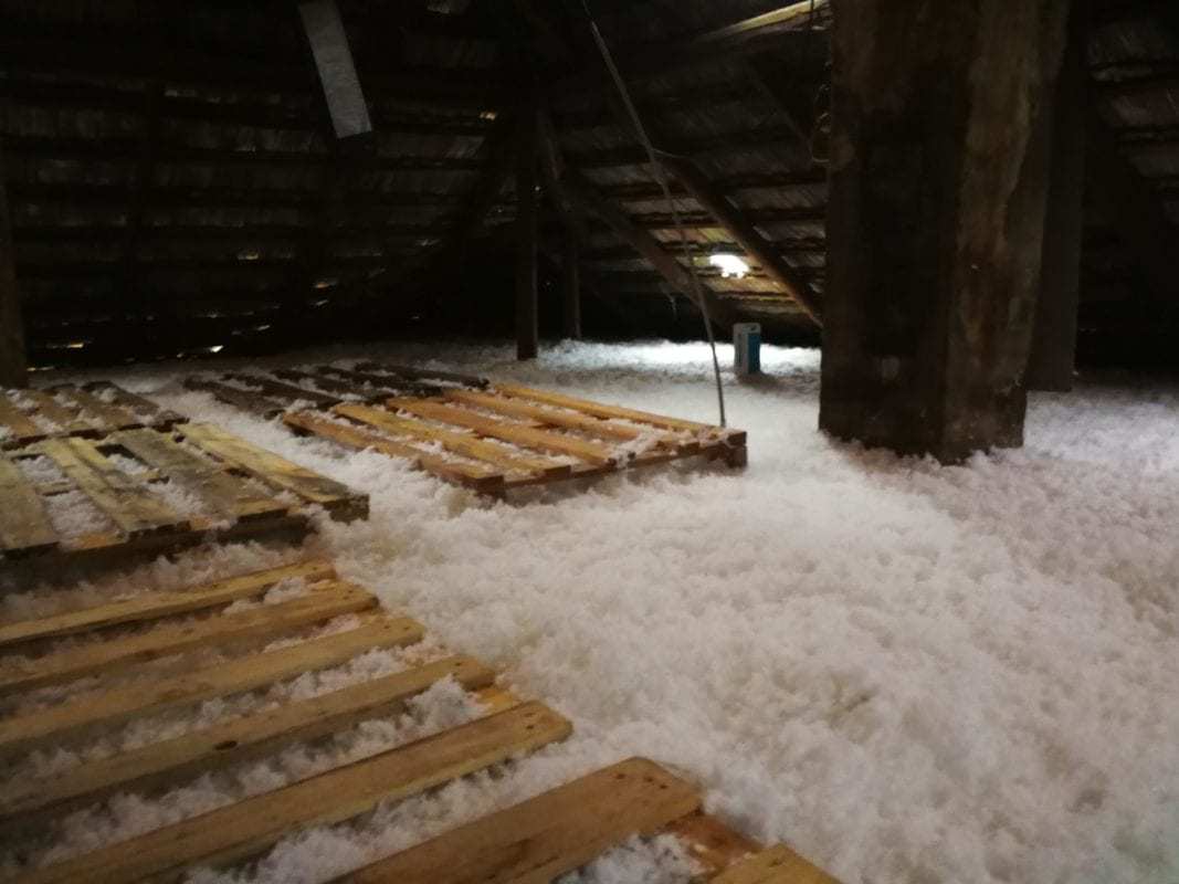 A nehezen elérhető helyekre is bejuttatható a fújható üveggyapot szigetelés bontás nélkül. Gyors, hatékony és tiszta. A szigetelés kész akár 1 nap alatt!